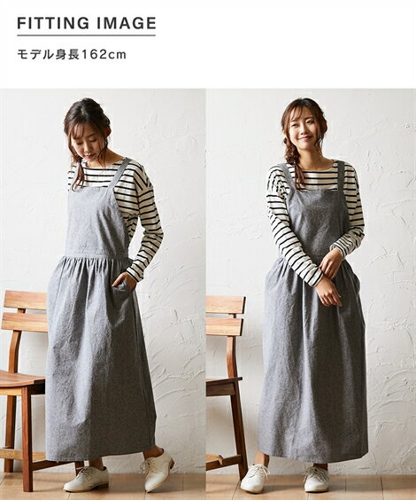 素材 品質=綿100%(織物)ウエストゴム入り[裏地]無 両脇ポケット付 肩紐の長さはボタンで調整可能 原産国 中国製 メーカー品番 ZZY4321B0099 コメント 綿シャンブレーでナチュラルな色合いが魅力ウエストは後ゴム入りなのでウエスト下からのフレアがきれいに広がり肩紐の長さは後ろのボタンで調整ができます。