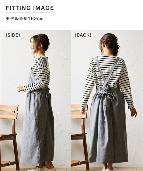 スカート ロング丈 マキシ丈 レディース 綿 シャンブレー エプロン サロペット ベージュ/モノトーン系 M〜L ニッセン nissen