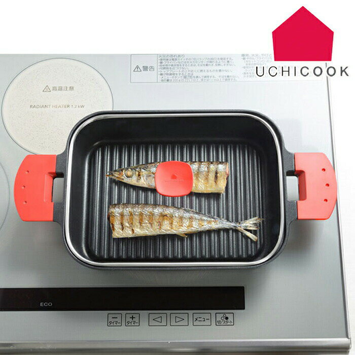 送料無料 UCHICOOK ウチクック グリルパン 魚 焼き グリル スチームグリル メタルカバー レッド/ブラック ガス火対応 魚焼き器 ふた付き フライパン グリル鍋 角型 グリルプレート オール熱源対応 調理用品 日本製
