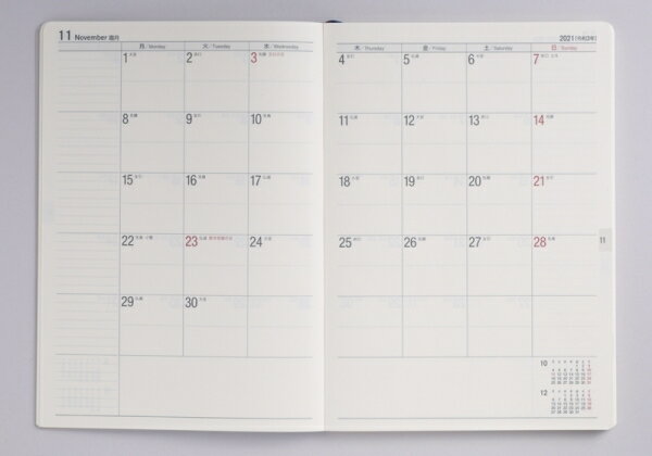 日々の時間管理がしやすいバーティカル式のため、ビジネスシーンでも使いやすい1冊です。