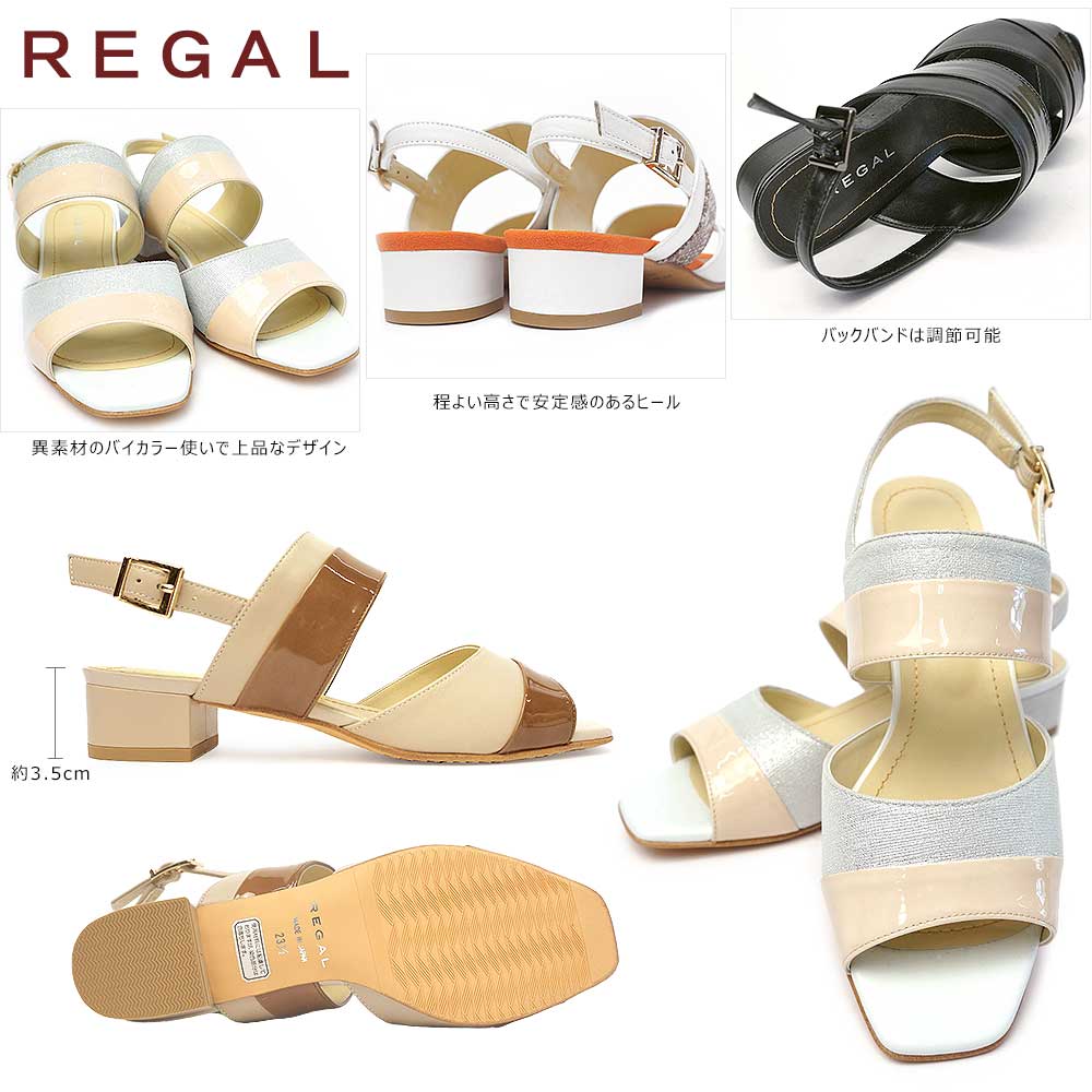 リーガル レディース サンダル F32J レザー バックストラップ 本革 日本製 REGAL エナメル 型押し Made in Japan