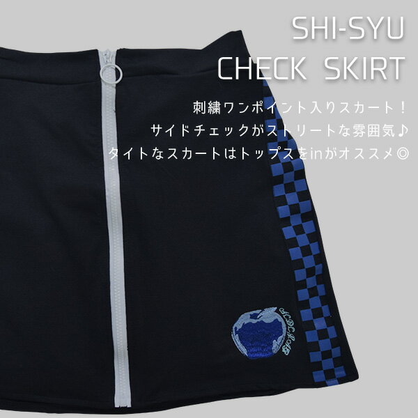 【原宿系×ストリート"CHECKシリーズ"】 韓国ファッションみたいな刺繍入りタイトスカート! サイドチェックでストリートな雰囲気に♪