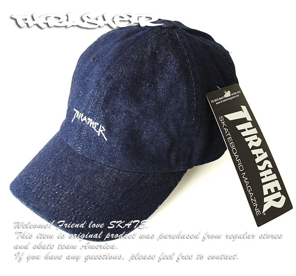 Thrasher Magazine デニム ローキャップ ダッドハット 帽子 スラッシャー LOW CAP One Wash Denim Navy マークゴンザレス スケボー SK8 スケートボード HARD CORE PUNK ハードコア パンク HIPHOP ヒップホップ SURF サーフ スノボー スノーボード Snowboard NINJA X