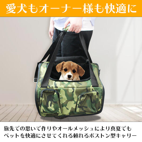 2way仕様のペットバッグ! ペットバッグ ショルダーバッグ ボストンバッグ 耐荷重:8kg 迷彩柄 グリーン/緑 【ペット用キャリーバッグ ペット鞄 犬用品 ペット用品 散歩バッグ 移動用 お出かけ用 キャリーケース 旅行 非常用 防災 災害 緊急時 超小型犬 小型犬 中型犬】